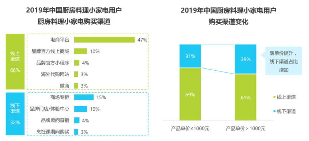 中国厨房小家电用户选择线下渠道的比重也有所增加。