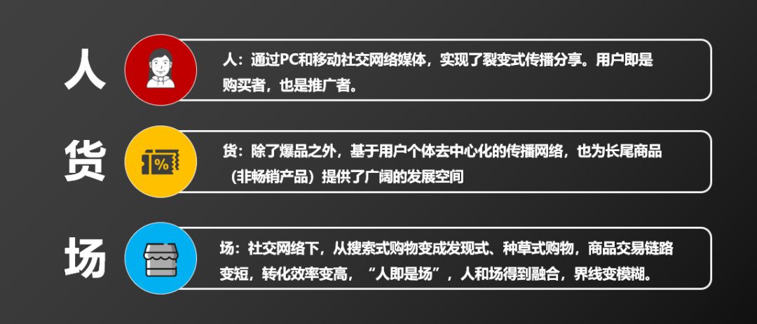 根据权威机构给出的分析,随着社交媒介的高速发展,新兴消费人群的崛起,零售技术的迭代,零售三要素“人、货、场”发生了很大的变化,其定义也全部被重构: