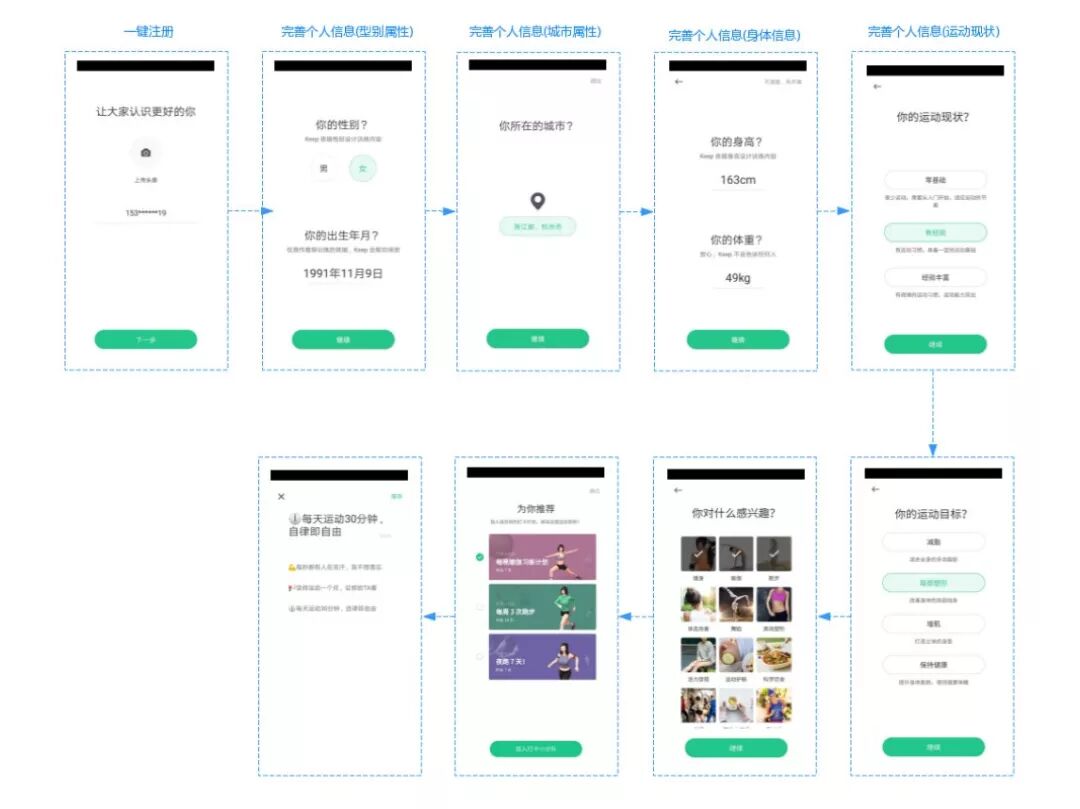 注册——>跟练课程——>跟练课程——>发布内容——>消费