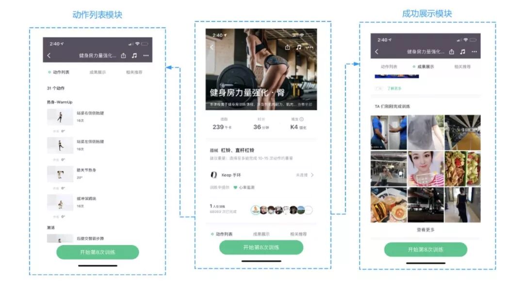 从业务模块分析,Keep包含了工具模块,移动健身教练;