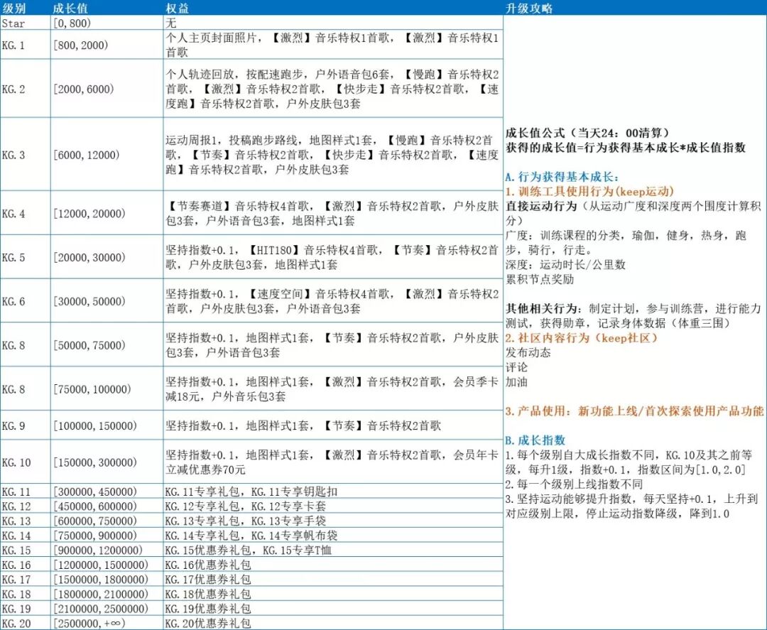 2)社区模块,依托于Keep的工具属性而存在。很大一部分的社区内容来源于用户完成训练后发布动态,在社区运营给出的发布优质动态攻略来看,训练完成后发布动态比直接发布动态更能获得流量的提升。Keep通过搭建卡路里币积分激励体系、游戏激励体系、经验值成长等级激励体系、排行榜激励体系、勋章激励体系,来完成对用户在这两个模块中的关键性我激励。