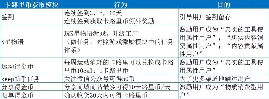 激励体系:卡路里币积分激励体系、用户成长等级激励体系、付费会员激励体系、游戏激励体系、任务激励体系。