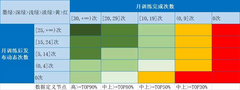 通过观察产品可以很直接地看出来,在整个“训练”产品UI的设计中,最重要的两个功能模块分别是动作演示以及成果展示两个模块。动作展示属于训练内容解析为训练服务,成果展示则是训练之后用户发布的和课程有关的动态,同时起到丰富社区内容的作用。因此,选择用户训练次数以及训练后发布动态次数来进行用户分层。