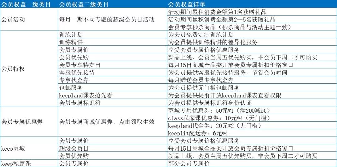 除了通过产品的设计研发来提升Keep的电商功能使用体验外,Keep在电商模块的用户运营中,主要使用付费会员激励体系来促成用户的消费频次和客单价。