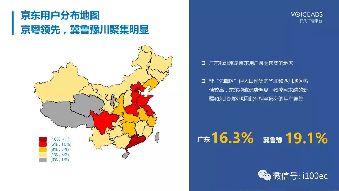 京东用户分布地图,京粤领先,冀鲁豫川聚集明显