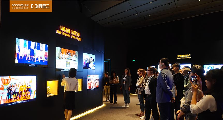 上午的分享结束后,参会的嘉宾又集体参观了阿里巴巴9号馆。9号馆在阿里巴巴西溪园区的东南角,场馆依水而建,外形酷似舰船。步入阿里9号馆,直接映入眼帘的是左手边数据变动的数据大屏,和右手边别样的“清明上河图”。顺着大屏旁奇幻的“时光隧道”走进展厅,一幅阿里发展生态版图尽在眼前。