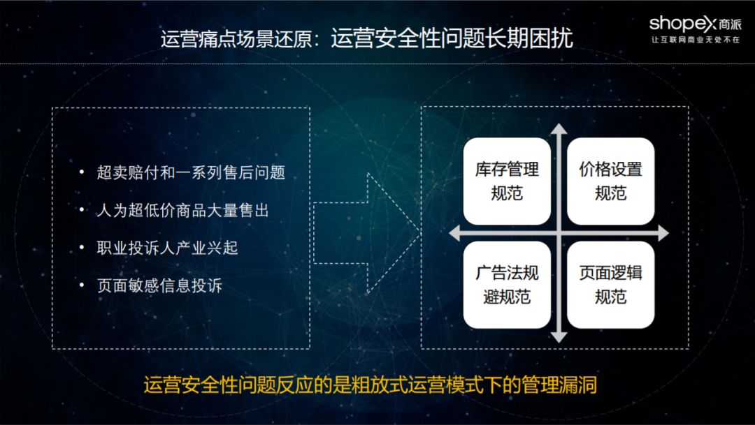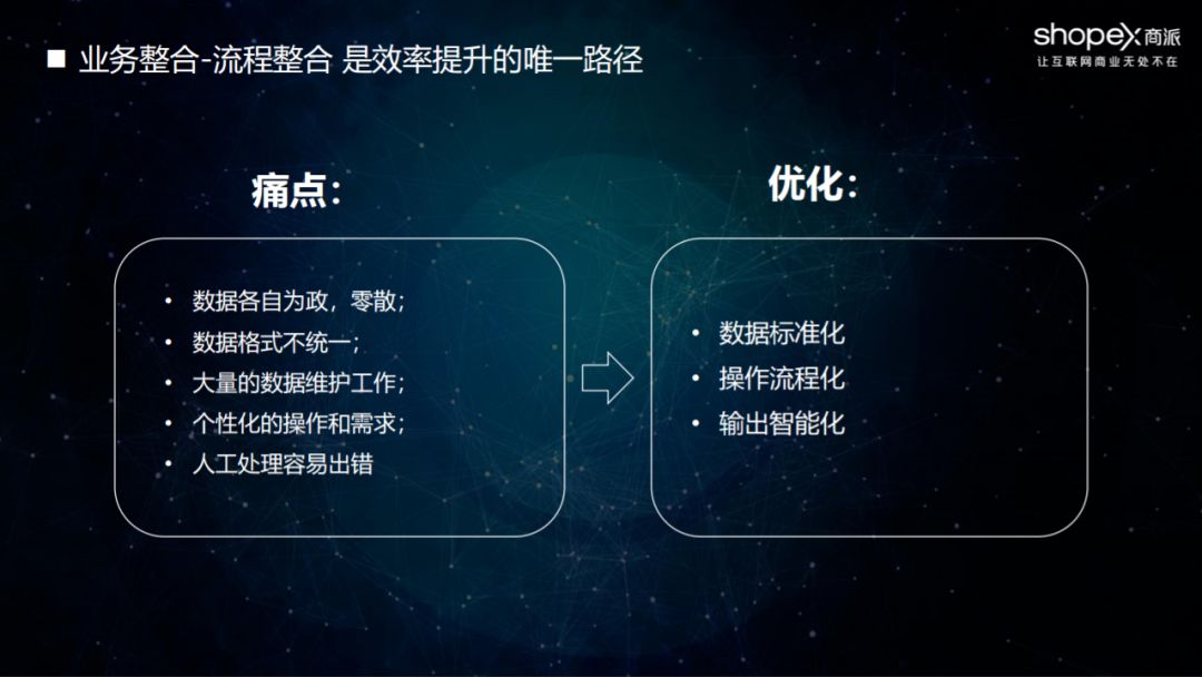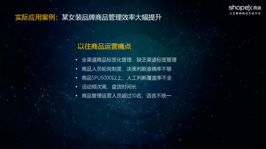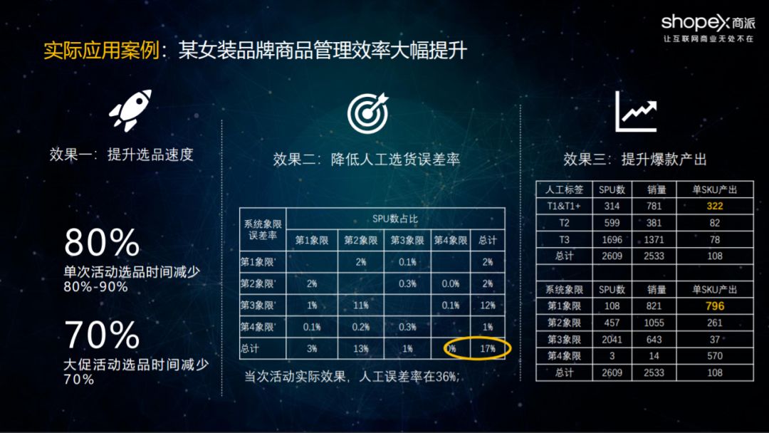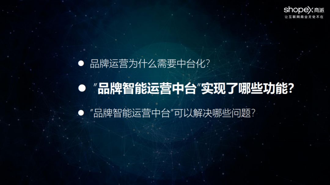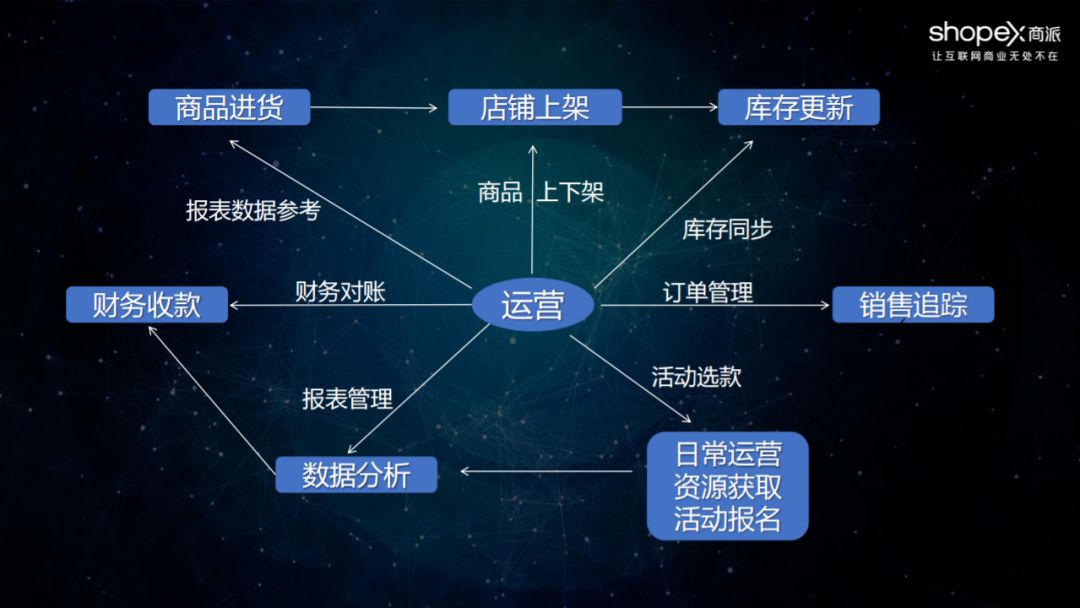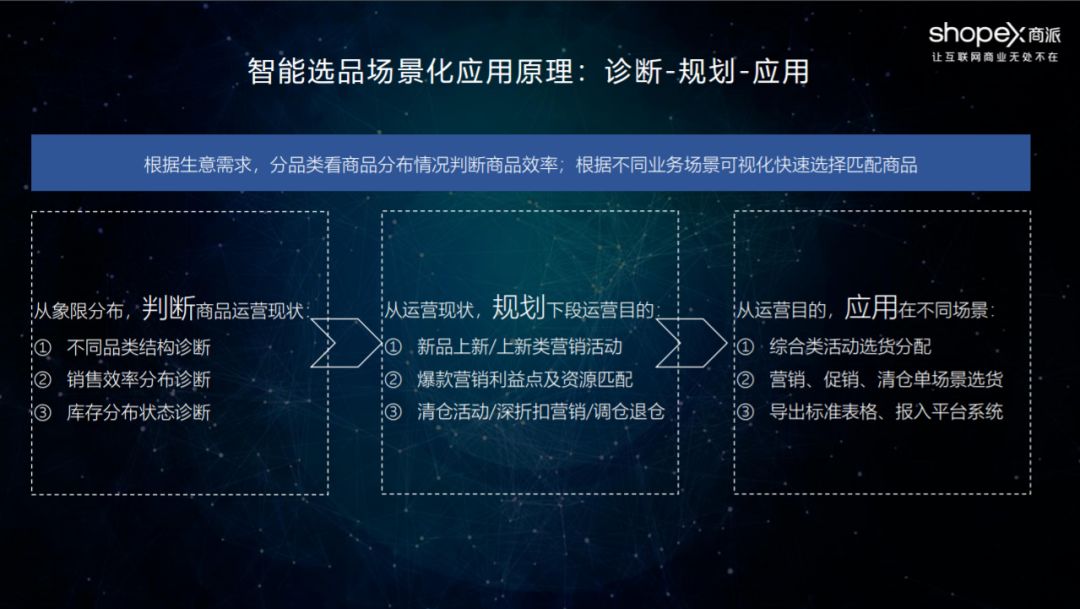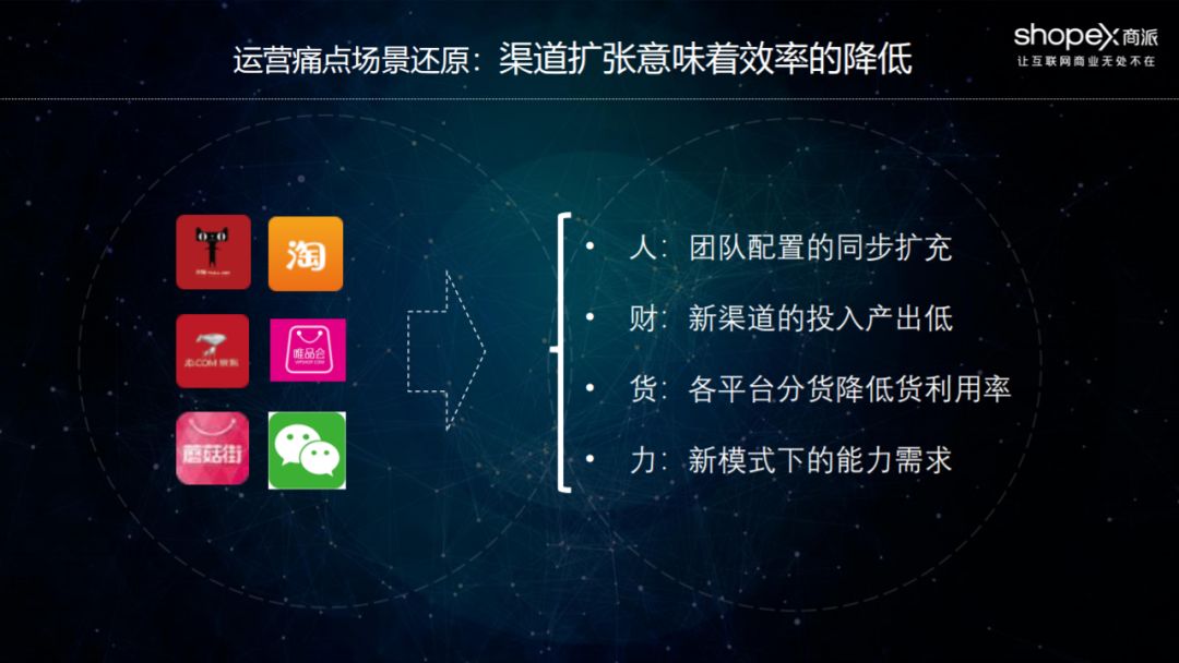 作为商派oneX的核心产品之一,“品牌智能运营中台”是商派联合知名的电商代运营服务商共同打造的。该智能运营中台是基于实操后端管理经验,把管理流程直接加载为系统流程,有效保障货品、商品、库存、财务的整体运转效率。“品牌智能运营中台”适合多渠道商品运营的品牌电商部门,以及电商代运营公司。帮助他们用商品的全链路数据,提升品牌电商全渠道零售效率,降低企业的商品运营成本。