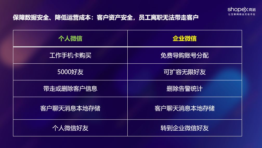 另外,由于很多大品牌客户会担心个人号封号问题,导致企业决策人不敢轻易立项,因为个人微信号的微信私域流量玩法,很多并不是合规的载体。还有一些企业默许导购加客户微信进行维护,一旦导购离职,这些客户资产就会流失。如今企业微信的更新升级,正是一步一步解决这些问题。