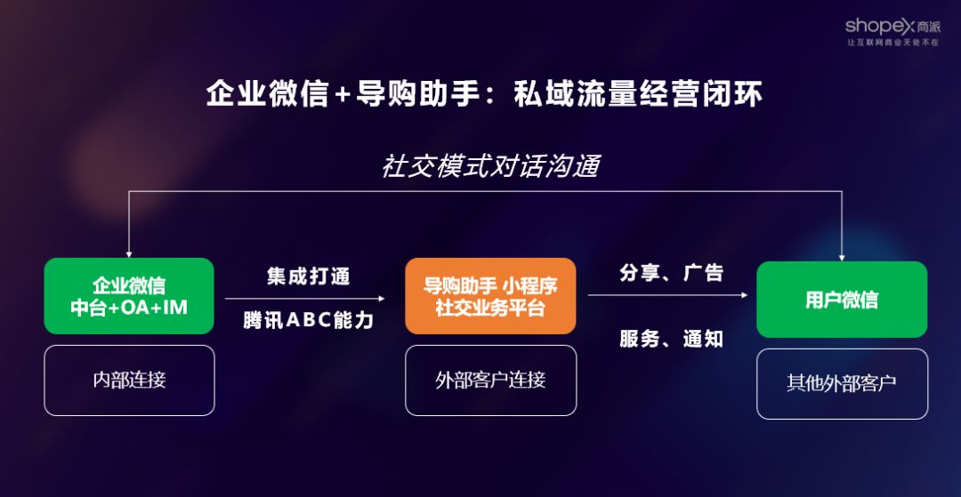 实体零售企业拥抱互联网,首先员工要在线,其次是产品在线。做到这两点,客户才会在线。很多实体渠道做到了产品在线,但做不到员工在线,企业微信是员工在线最合适的工具。如今,企业微信能够跟顾客个人微信进行相连,也成为了员工在线最有利的武器,而社交零售小程序则实现了产品在线落地。