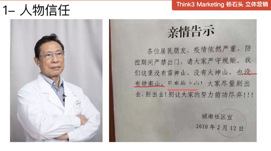 疫情之下,为什么对于大众来说,终南山院士和李兰娟院士讲的话,比疾控中心的公告,大家更愿意听?这是因为人与人之间会产生一个强信任。