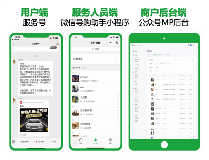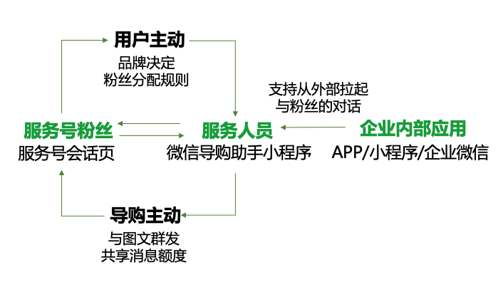 用户得到专业服务,导购拥有便捷的管理工具,商户达成服务号粉丝的承接转化。