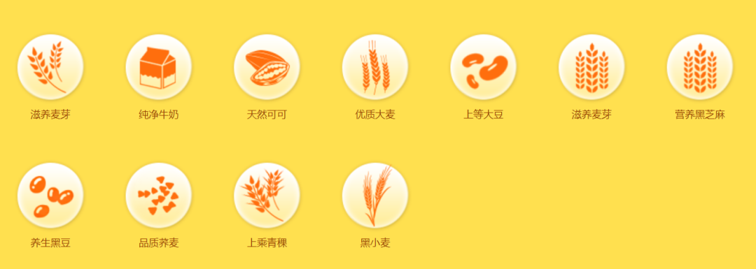 滋养麦芽、纯净牛奶、天然可可、黑芝麻、黑豆等