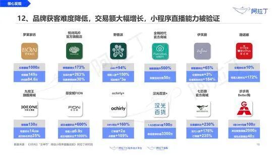 通过小程序直播,部分品牌的订单量增长近12倍,部分品牌交易额增长5倍,还有品牌单日销售额突破2000万元大关。