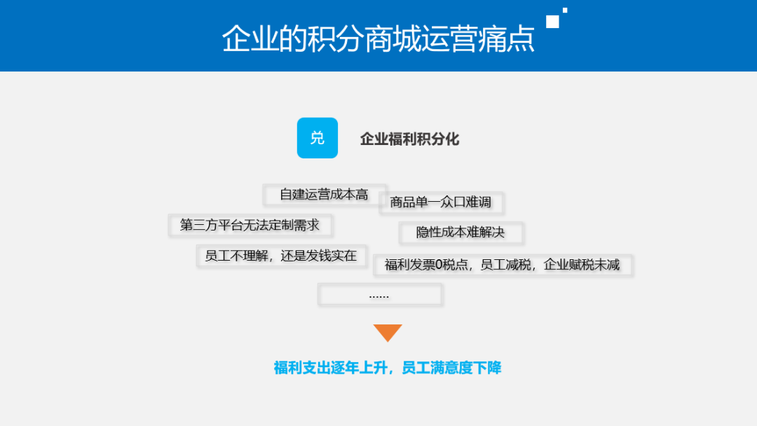 传统的积分平台仍然存在诸多的痛点。例如积分模式问题,平台运营问题,最大的问题还是商品和供应链管理问题;采用第三方的积分平台则无法实现品牌定制,运营不当最终也会导致客户和员工的满意度下降。