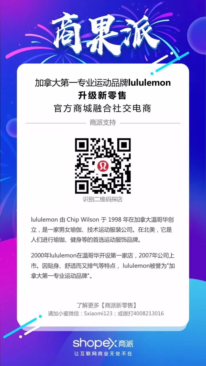 lululemon成立于1998年,如今已经成为一个全球知名的瑜伽服装品牌, 2016年开始进入中国大陆市场,2017年携手商派布局新零售,仅仅用了2年时间就创造了出色的业绩。