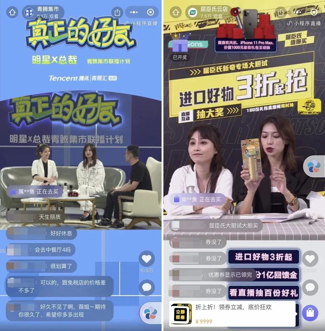 屈臣氏云店小程序直播3个半小时内,互动量超10万,卖出超1.4万件商品,对比同期销售提升165%;