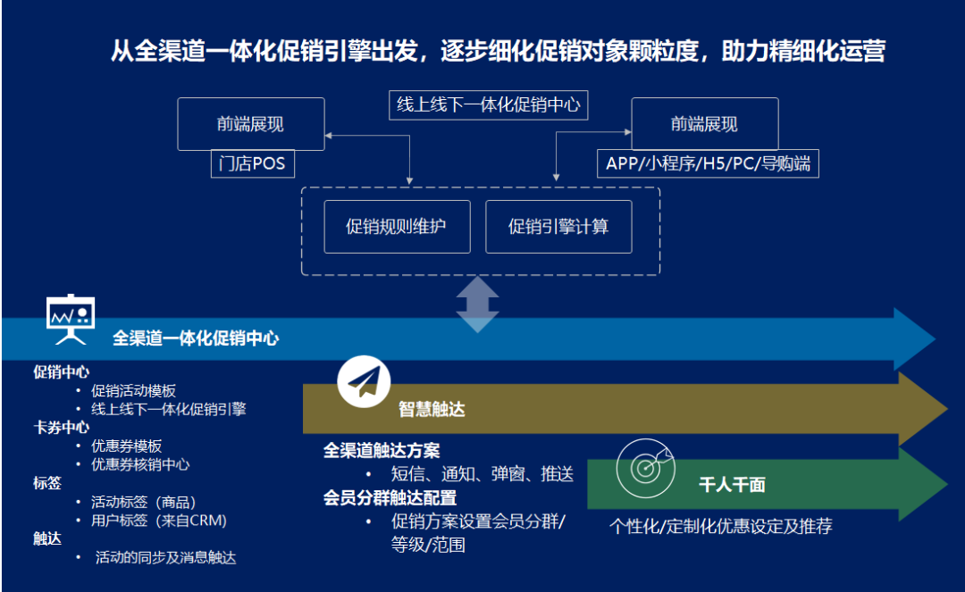 传统零售下,线上线下对于同一个促销名词理解不一致,导致线上线下活动不同步,引起消费者投诉。此外,不同的系统设置的促销方式,按各自逻辑进行促销应用,由于促销叠加、计算形式不一样,相同的促销结果不一致,导致订单失败,消费者投诉,财务统计混乱等问题。