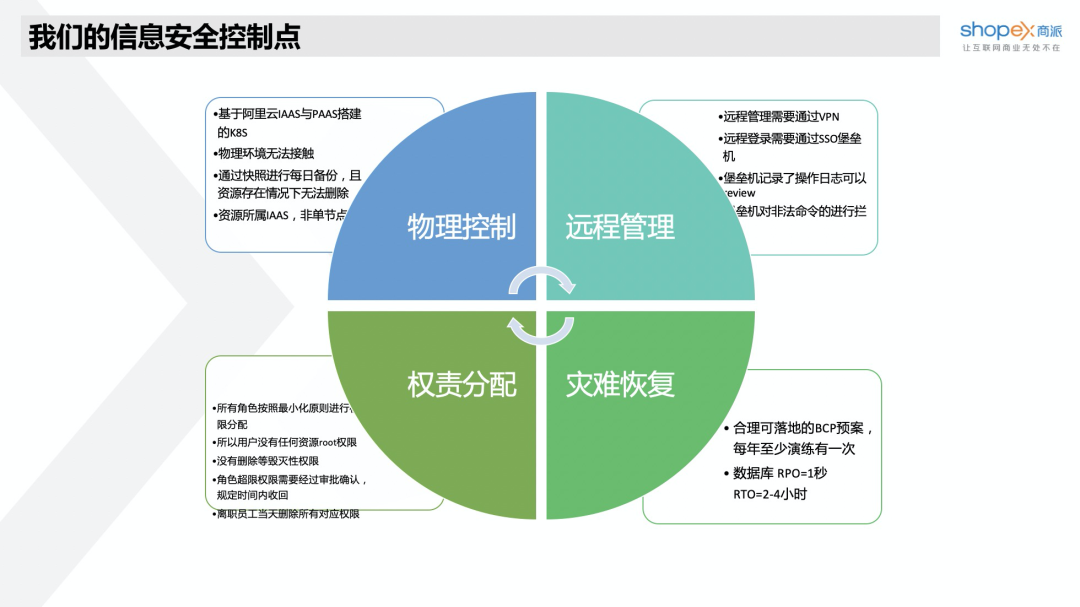 商派作为拥有18年企业数字化服务经验的服务商,早已获得了京东和阿里等各大平台的系统安全资质认证,并建立了一套完善的数据信息安全与管理流程,时刻保障客户的数字信息安全。