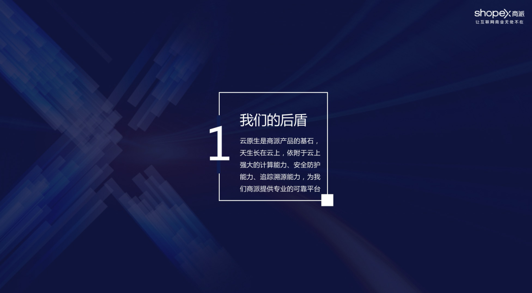 原生是商派产品的基石,天生长在云上,依附于云上强大的计算能力、安全防护能力、追踪溯源能力,为我们商派提供专业的可靠平台。