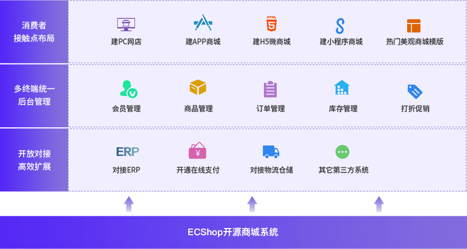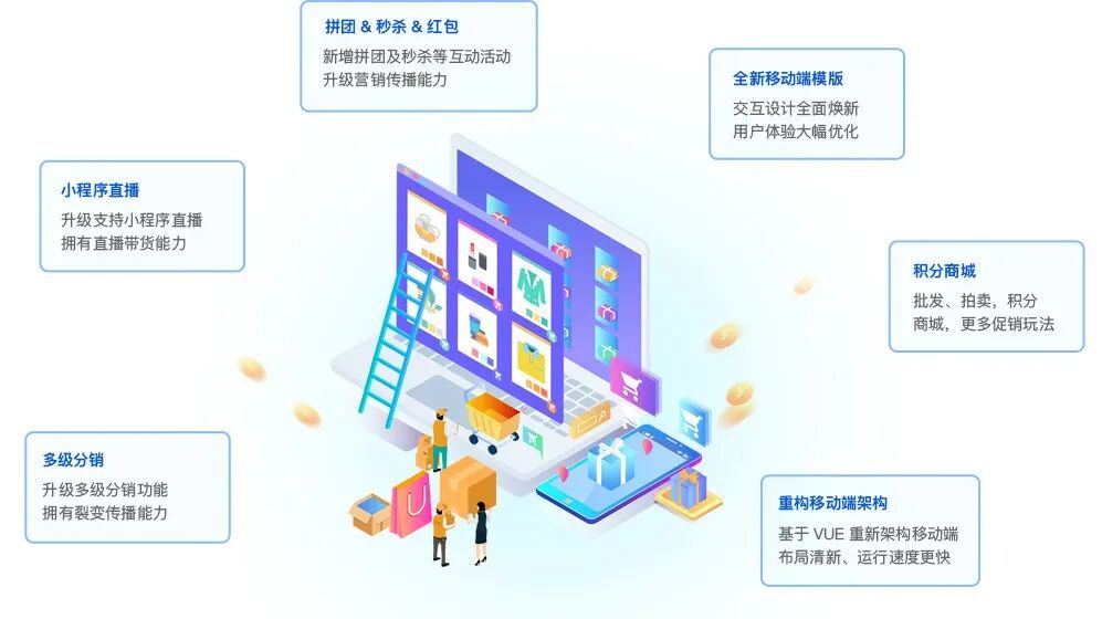ECShop支持多终端、多场景,支持社交分销、直播带货等;