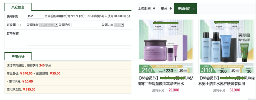 Ecshop支持会员积分,会员积分分两种,一种是消费积分,一种是等级积分,消费积分可随时变化,等级积分只增不减;消费积分相当于店铺货币,可以在购物时支付一定比例的积分;积分的换算比例可以设置,积分的支付比例可以设置;可以在积分商城用消费积分兑换商品;