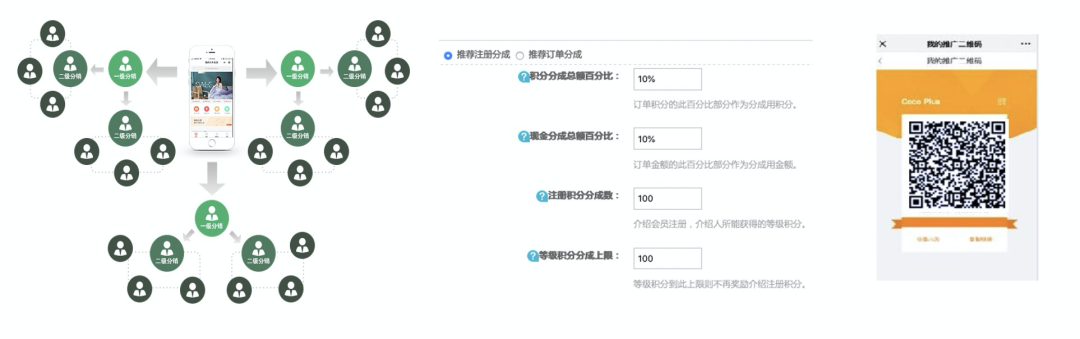Ecshop支持注册返佣、订单返佣,通过此方式可实现病毒式传播,快速拉新;通过分享商品链接,发展分销商,获取更多佣金;支持二维码、链接等多种推广方式,无限裂变成为经销商。
