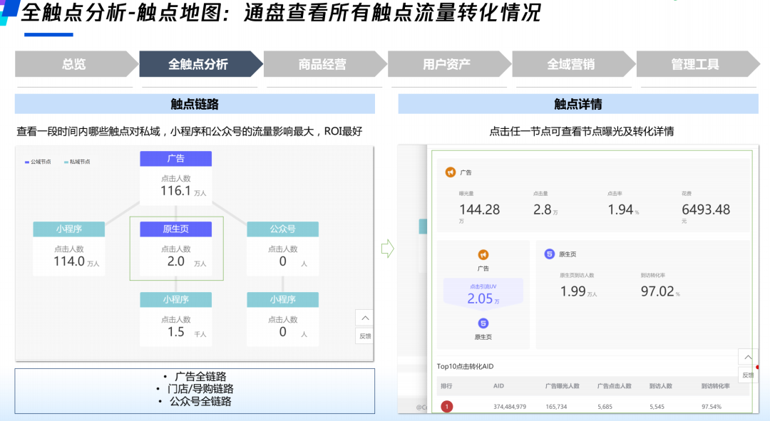 一为私域数据打通问题,即商家如何打通小程序、公众号、企业微信、社群等触点;