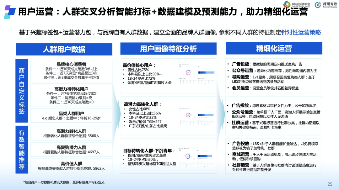 如今,会员跟导购的对话内容、领券动作、商品浏览行为、直播观看时间、过往订单信息等,品牌方将云店对接腾讯有数数据中台,可以完整的构建出会员的立体数字画像,并制定针对性的营销策略。